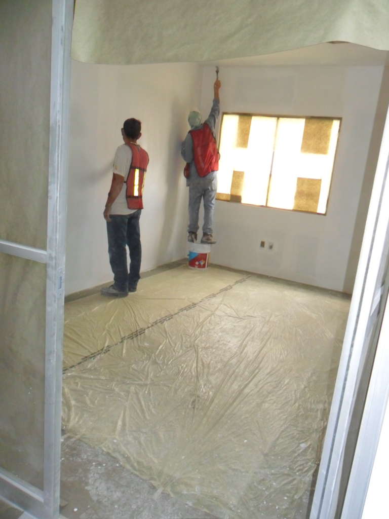 Aplicación de pintura vinilica en muros y pinturas epoxicas en pisos.