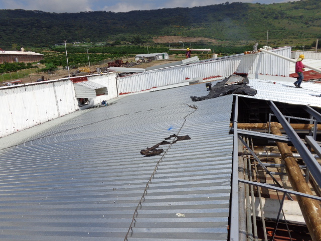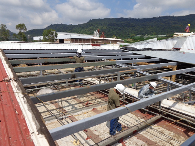 Fabricación de muros de tablaroca, Piso epoxico y cubierta nueva de nave